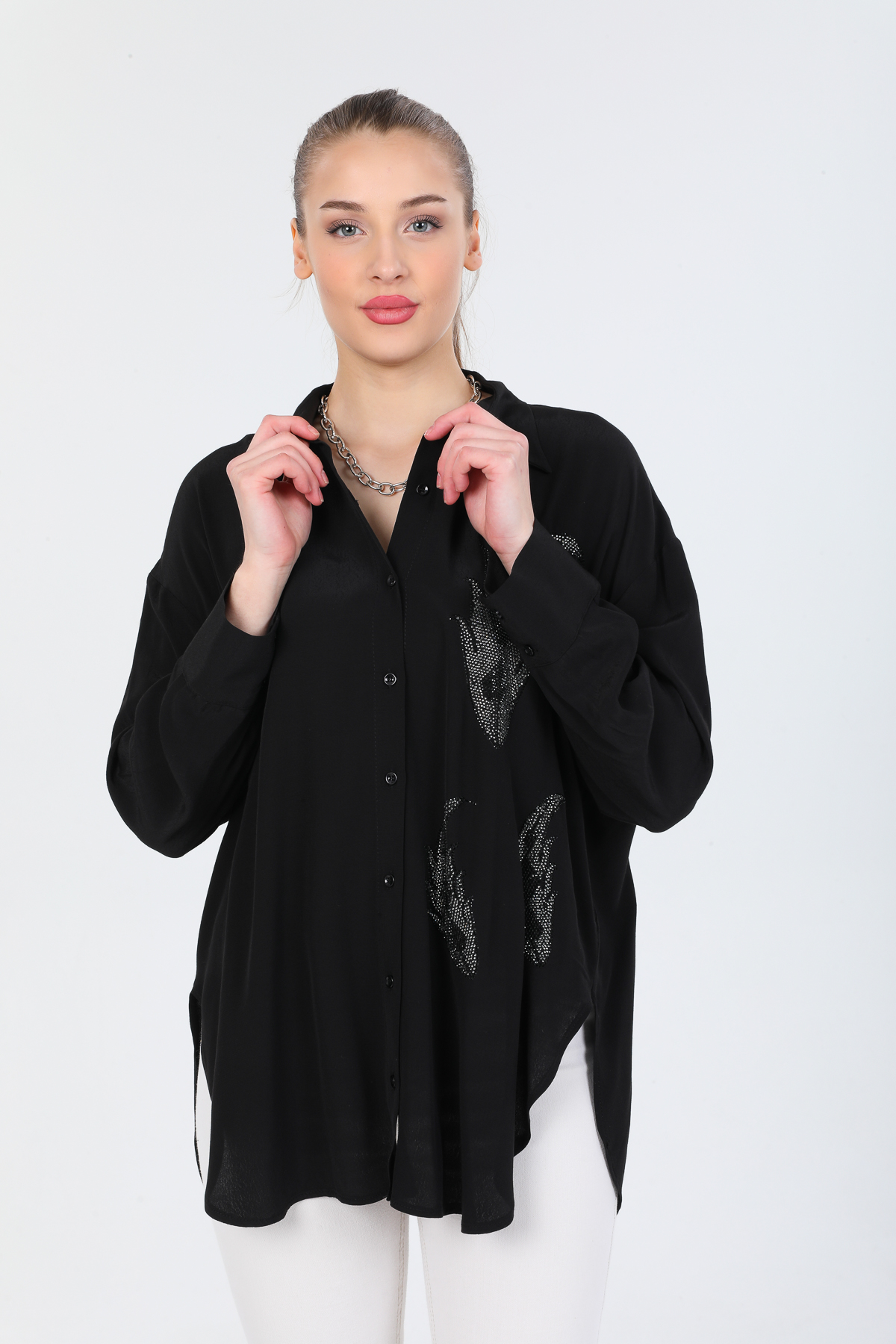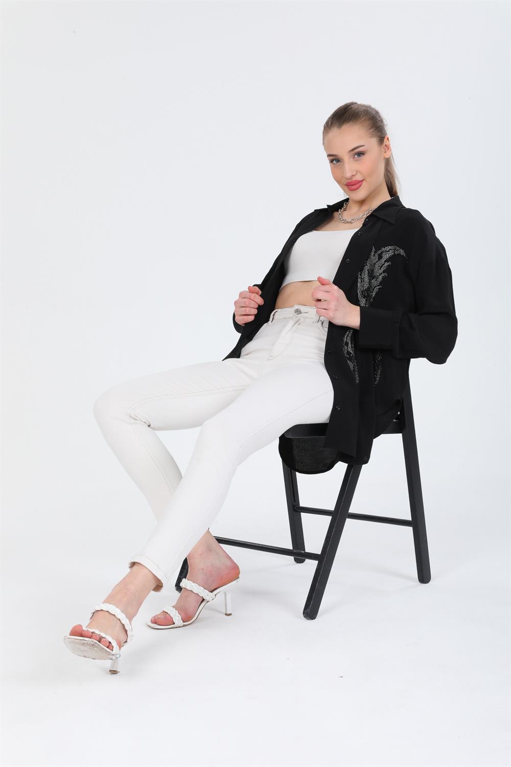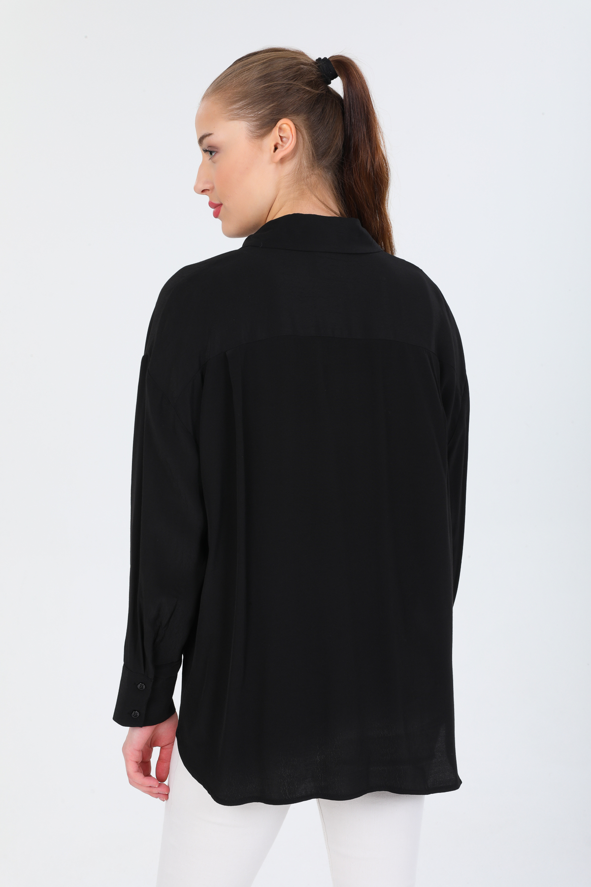 Kadın Gizli Düğme Özellikli Cepli Tunik Gömlek