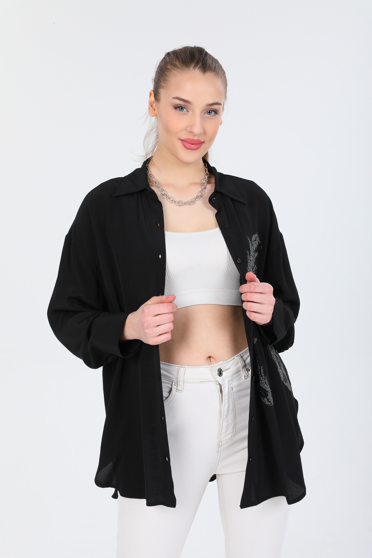 Kadın Basic Gizli Düğme Özellikli Gömlek