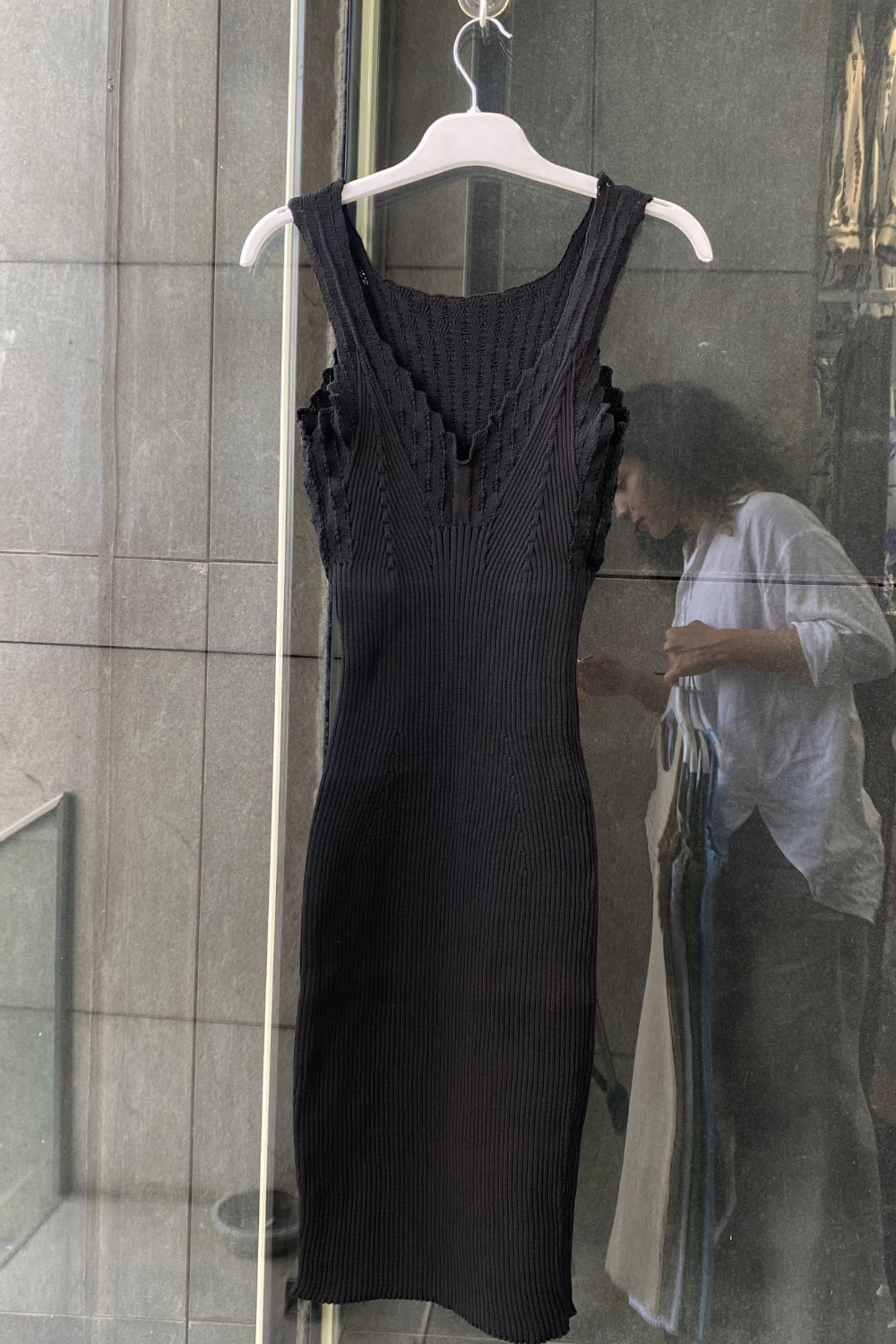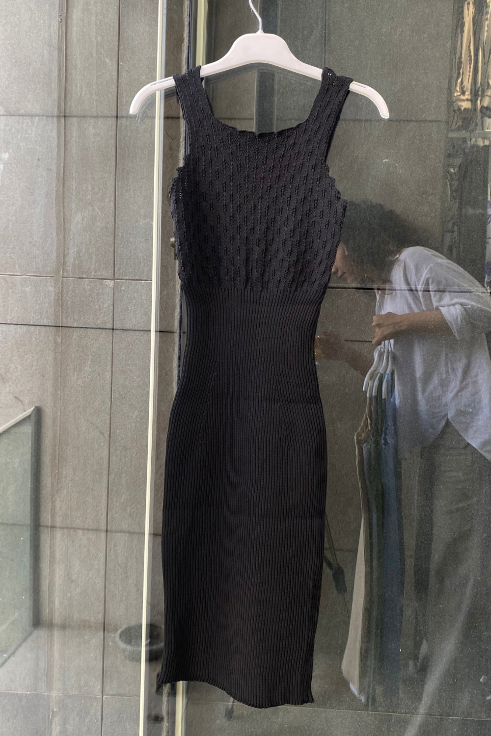 V Yaka Askılı Vücudu Saran Esnek Kumaş Triko Elbise