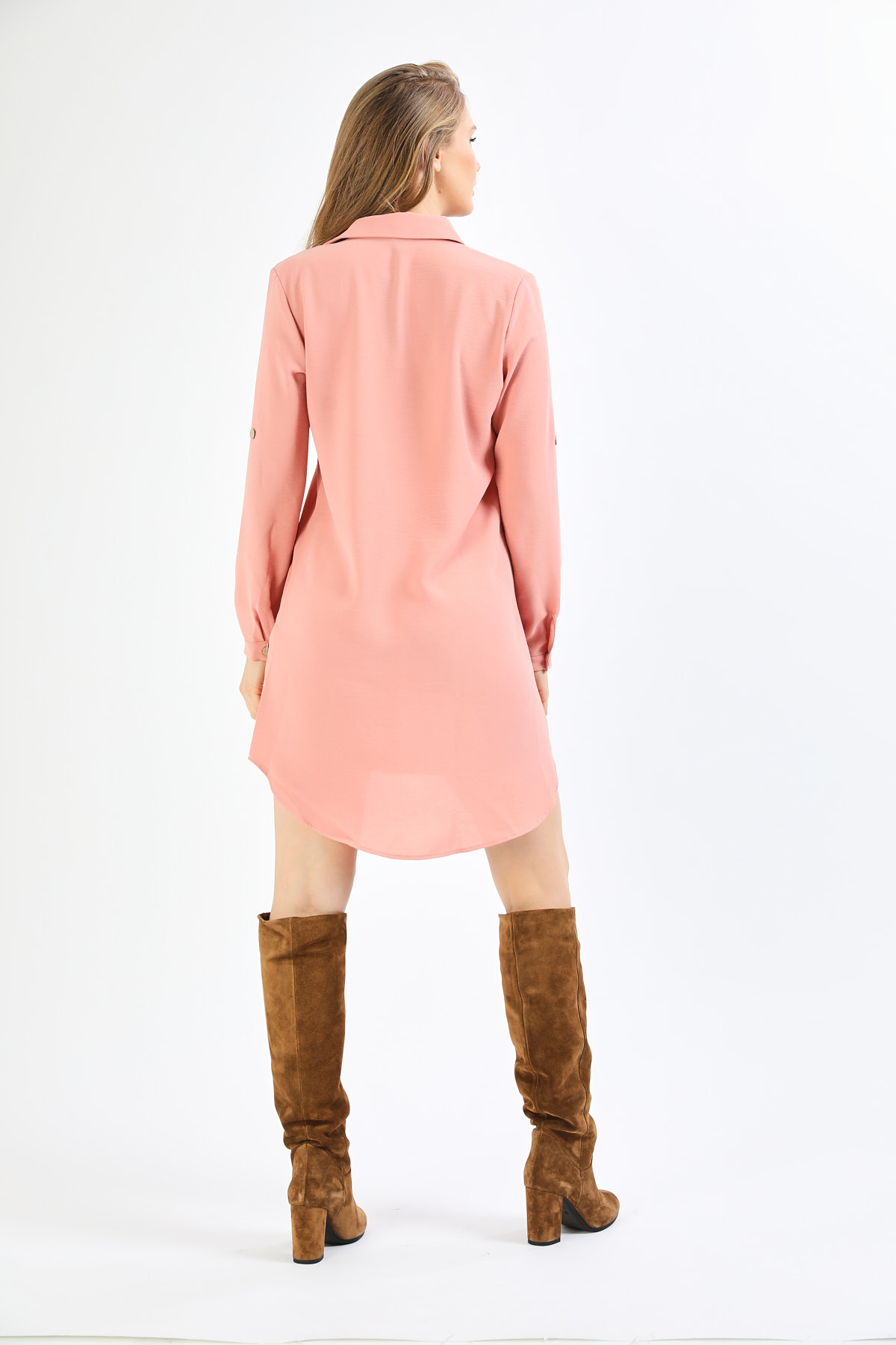 Yanı Tahta Düğmeli Açık Pembe Tunik Elbise