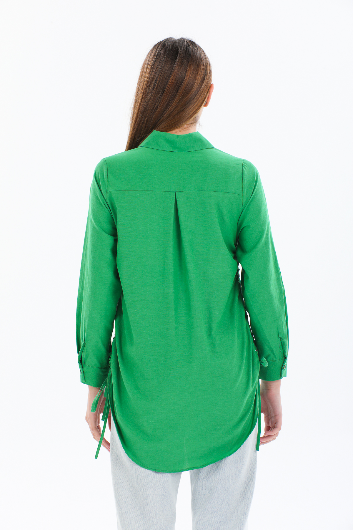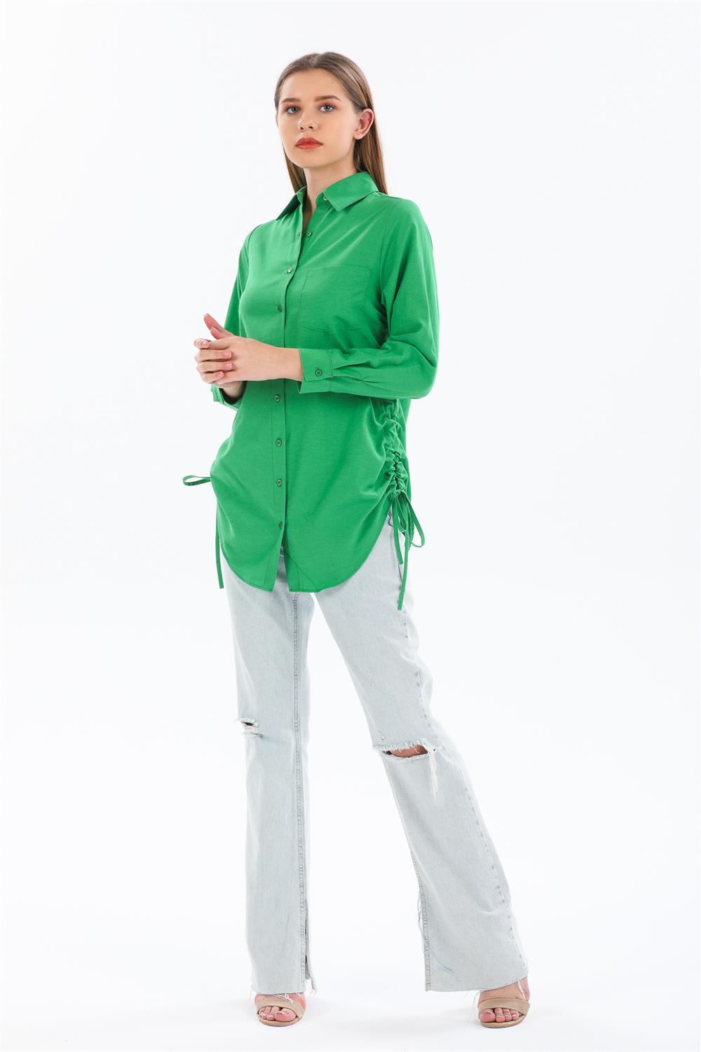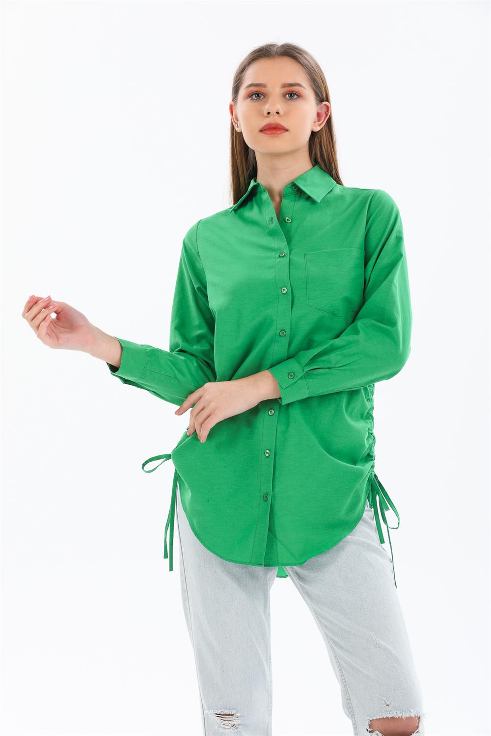 Rahat ve pratik: Yanları büzgülü kadın gömleklerimiz, kullanımı kolay ve rahattır. Hareket özgürlüğünüzü kısıtlamadan, her an stil sahibi olabilirsiniz.