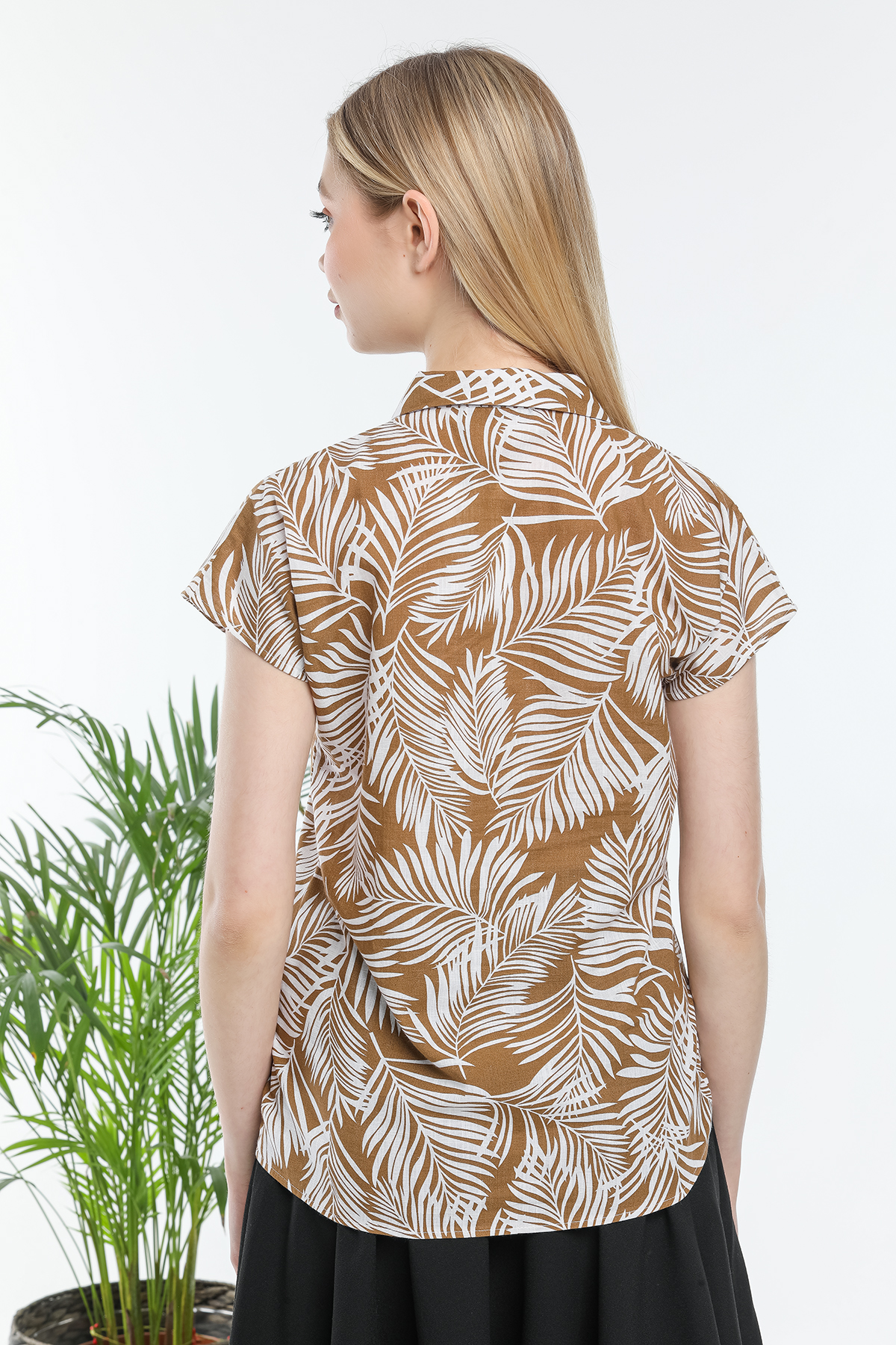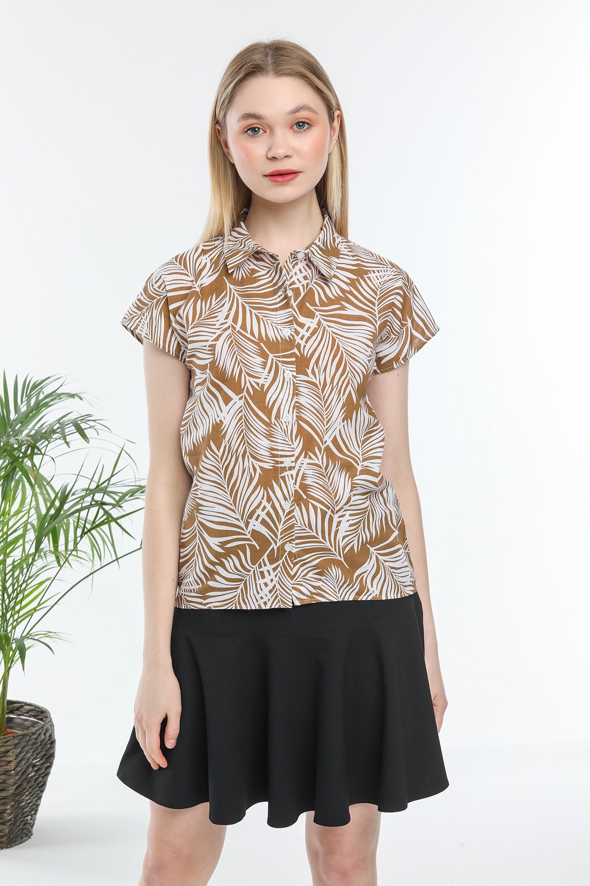 Yaprak Desenli Kısa Kollu Gömlek