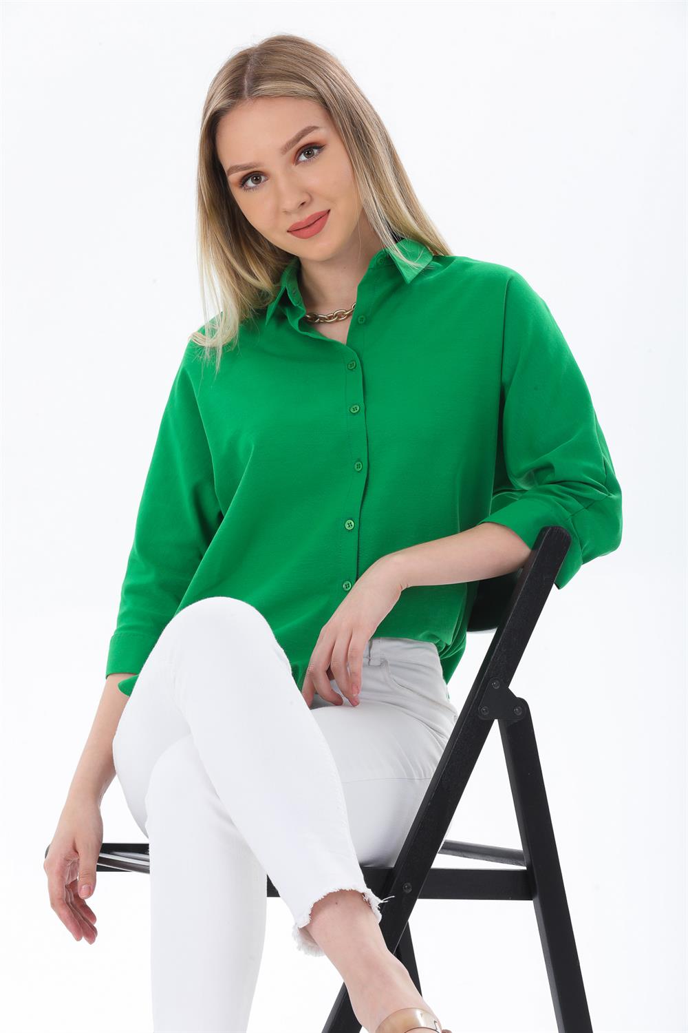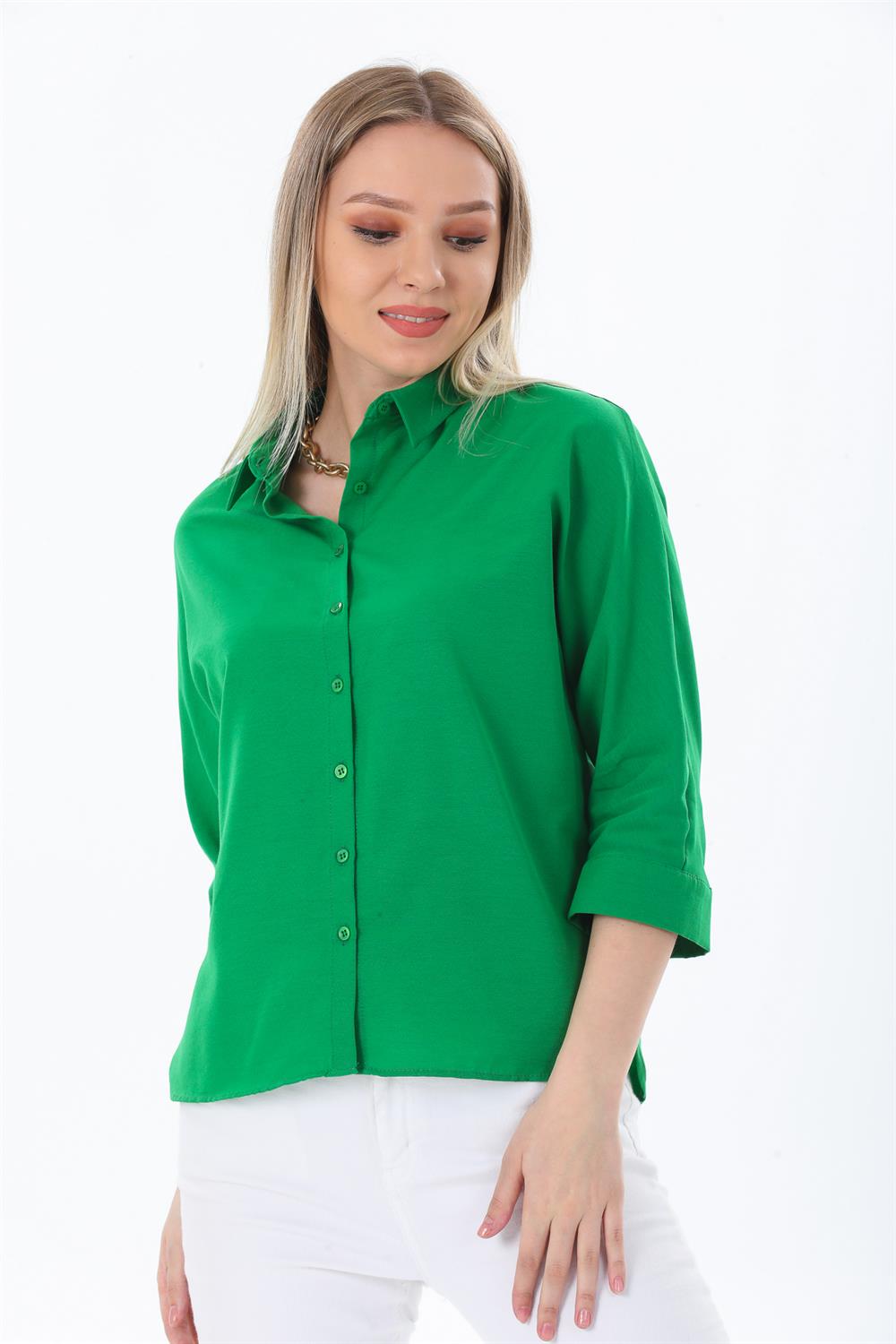 Kadın Basic Gizli Düğme Özellikli Gömlek