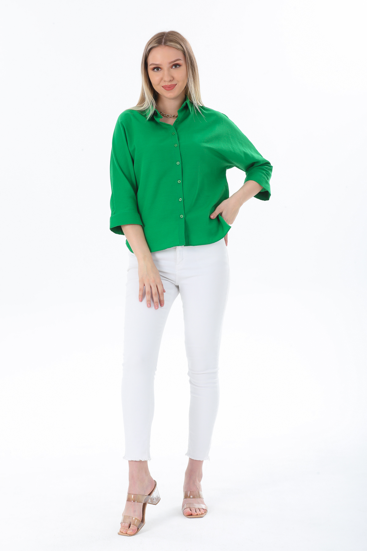 Kadın Basic Gizli Düğme Gömlek