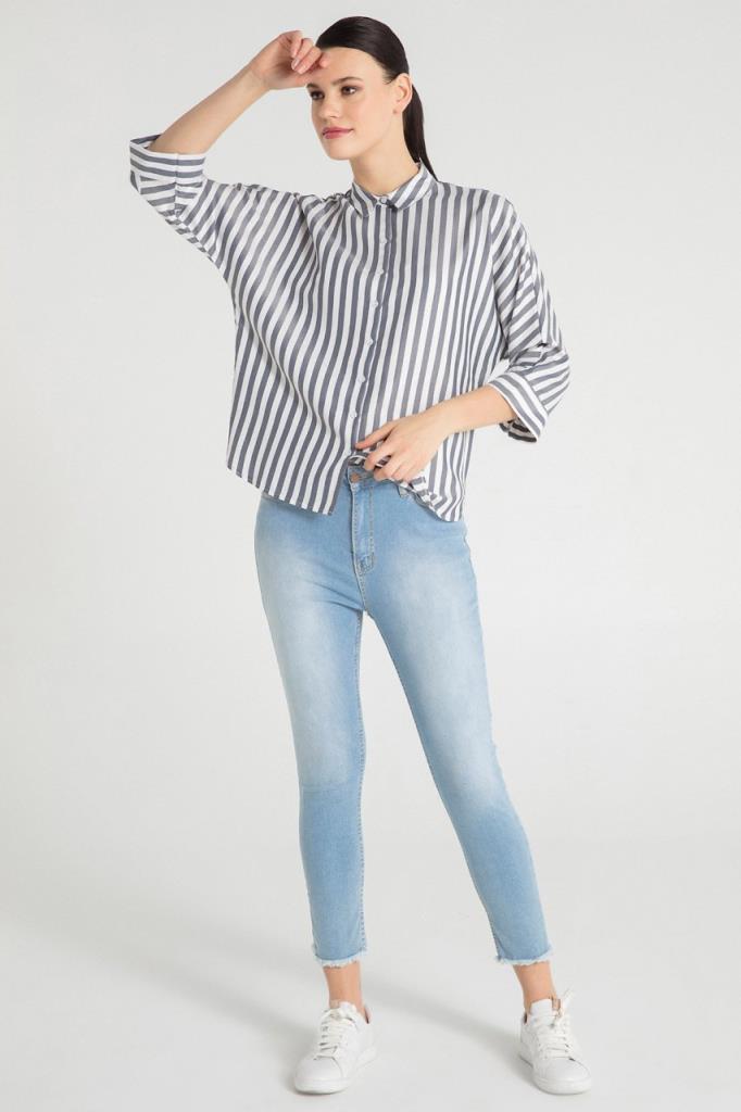 Ürün Özellikleri: Klasik yaka,beyaz düğmeli, bol kalıp, yarım kollu gömlek.