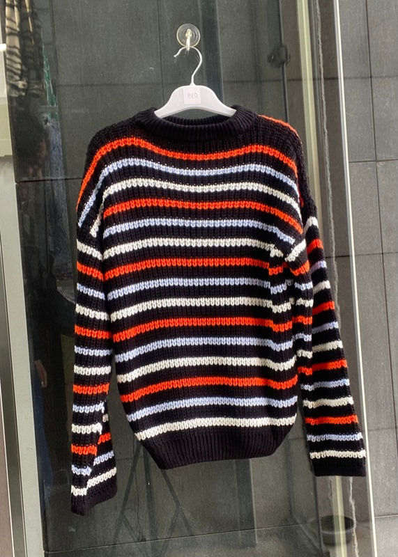 Yatay Çizgili Beyaz Kadın Örgü Triko Kazak
