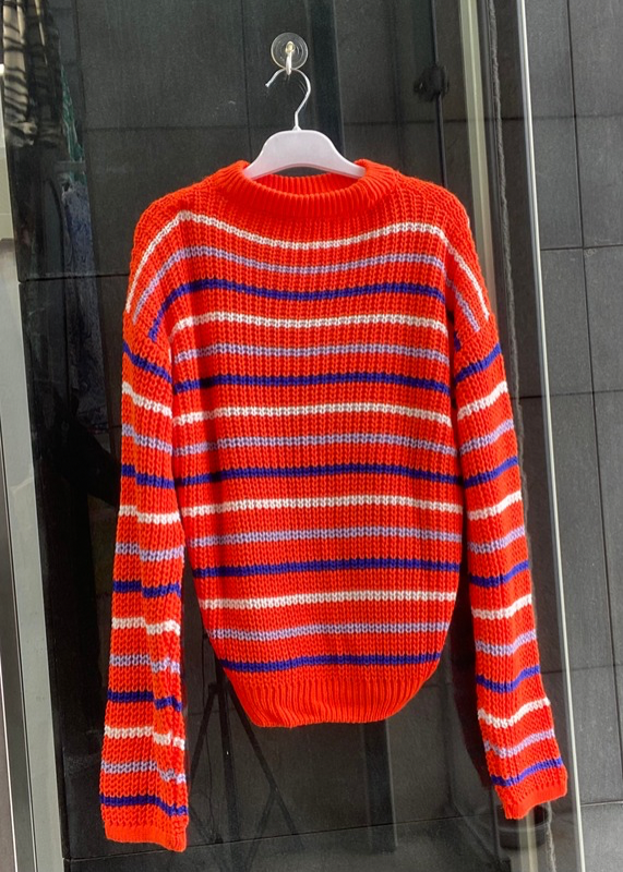 Yatay Çizgili Beyaz Kadın Örgü Triko Kazak