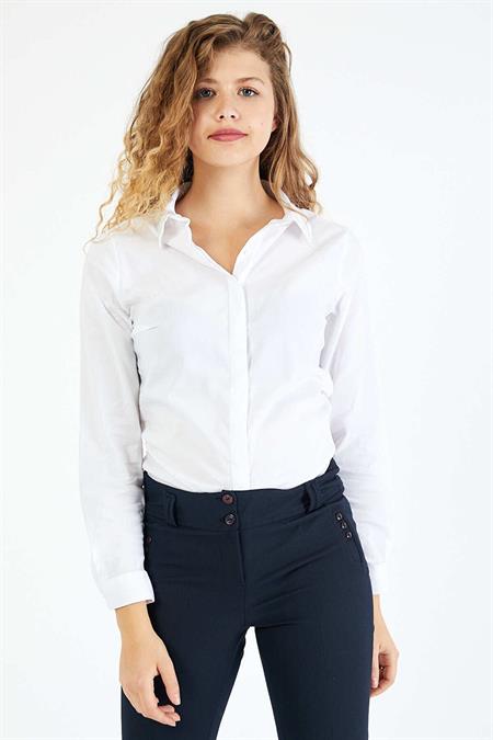 Kadın Basic Kesim Vücudu Saran Likralı Gizli Düğme Özellikli Gömlek