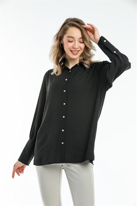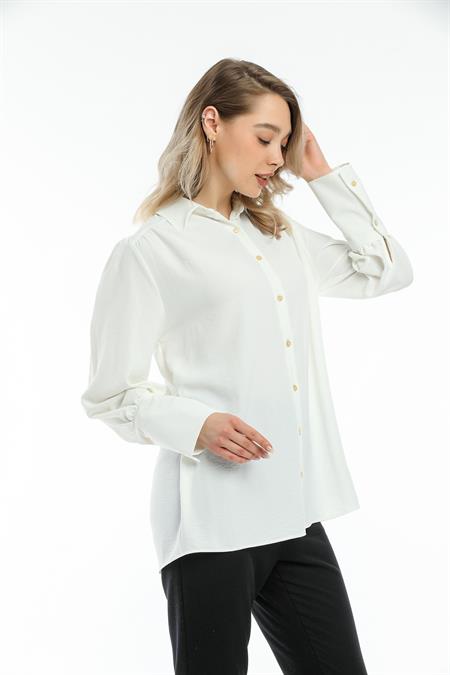 Manşet Detaylı Tahta Düğmeli Gömlek