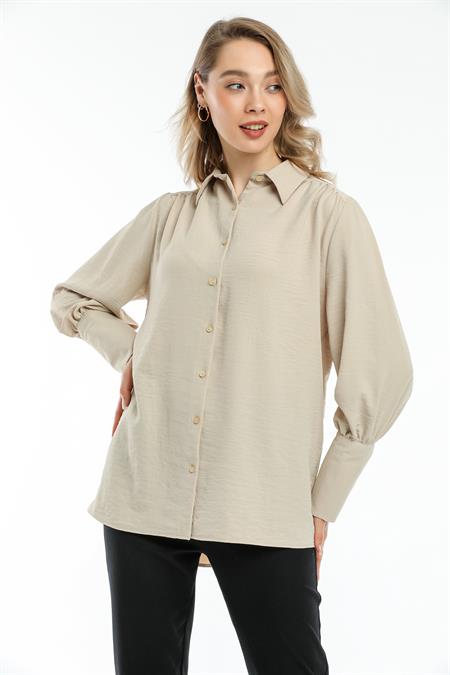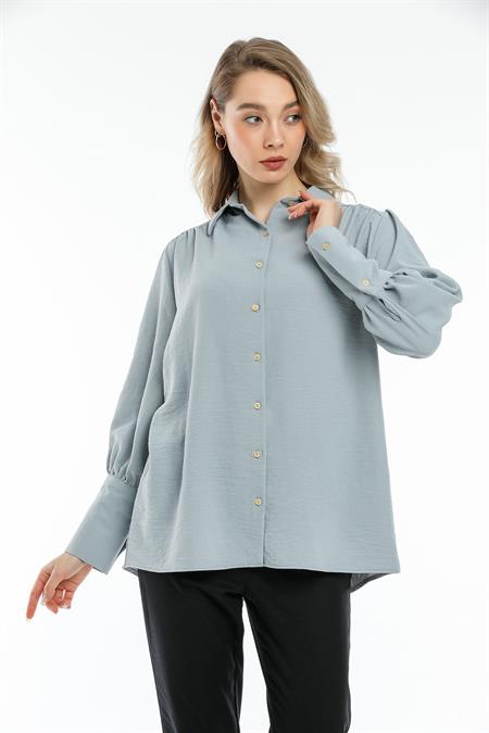 İnci Düğmeli Yarasa Model Gömlek