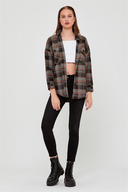 Düğmeli Çift Cep Detaylı Oduncu Gömlek