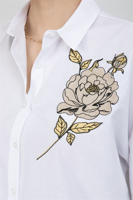 Güpür Detaylı Çizgili Beyaz Gömlek