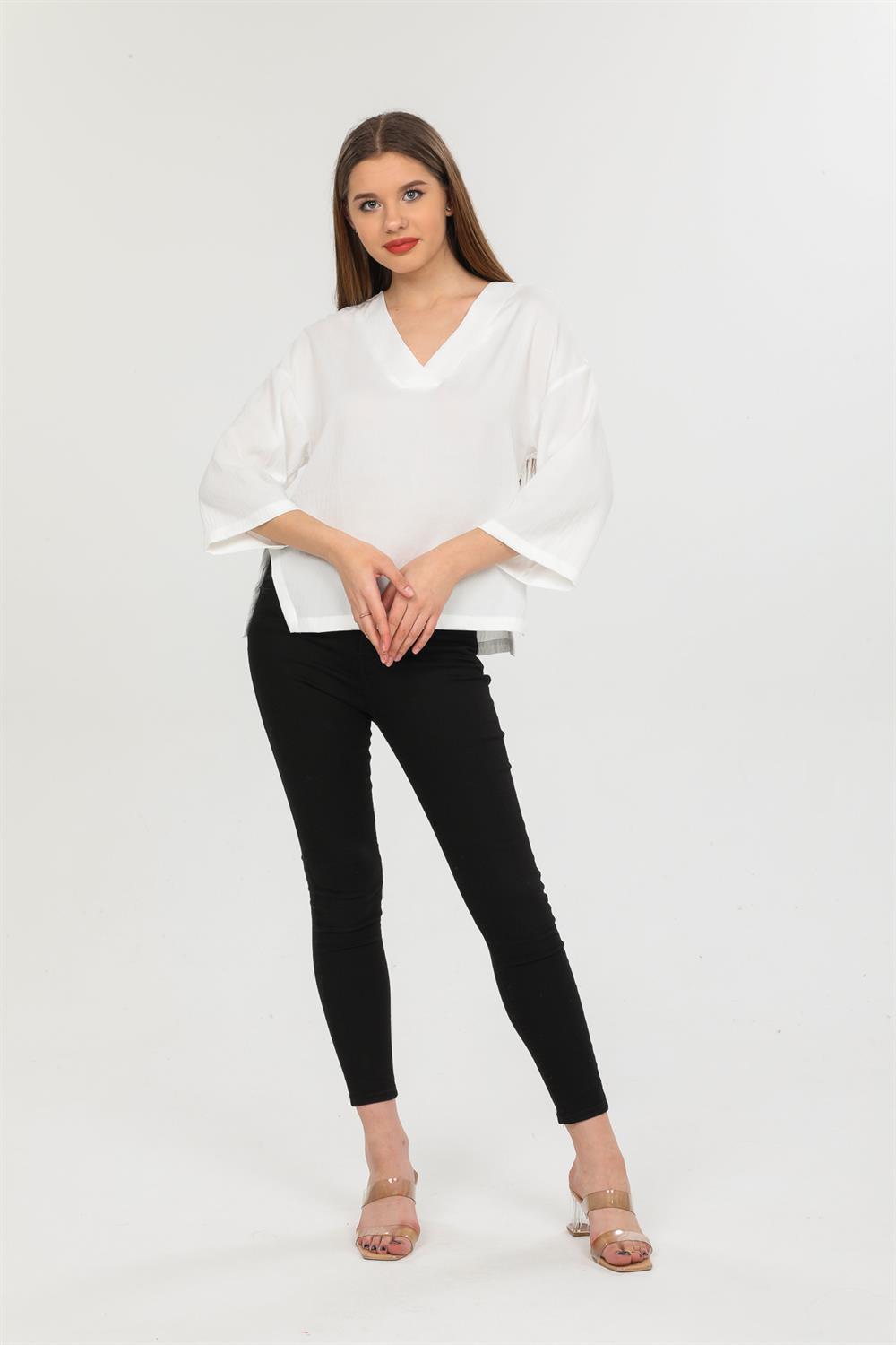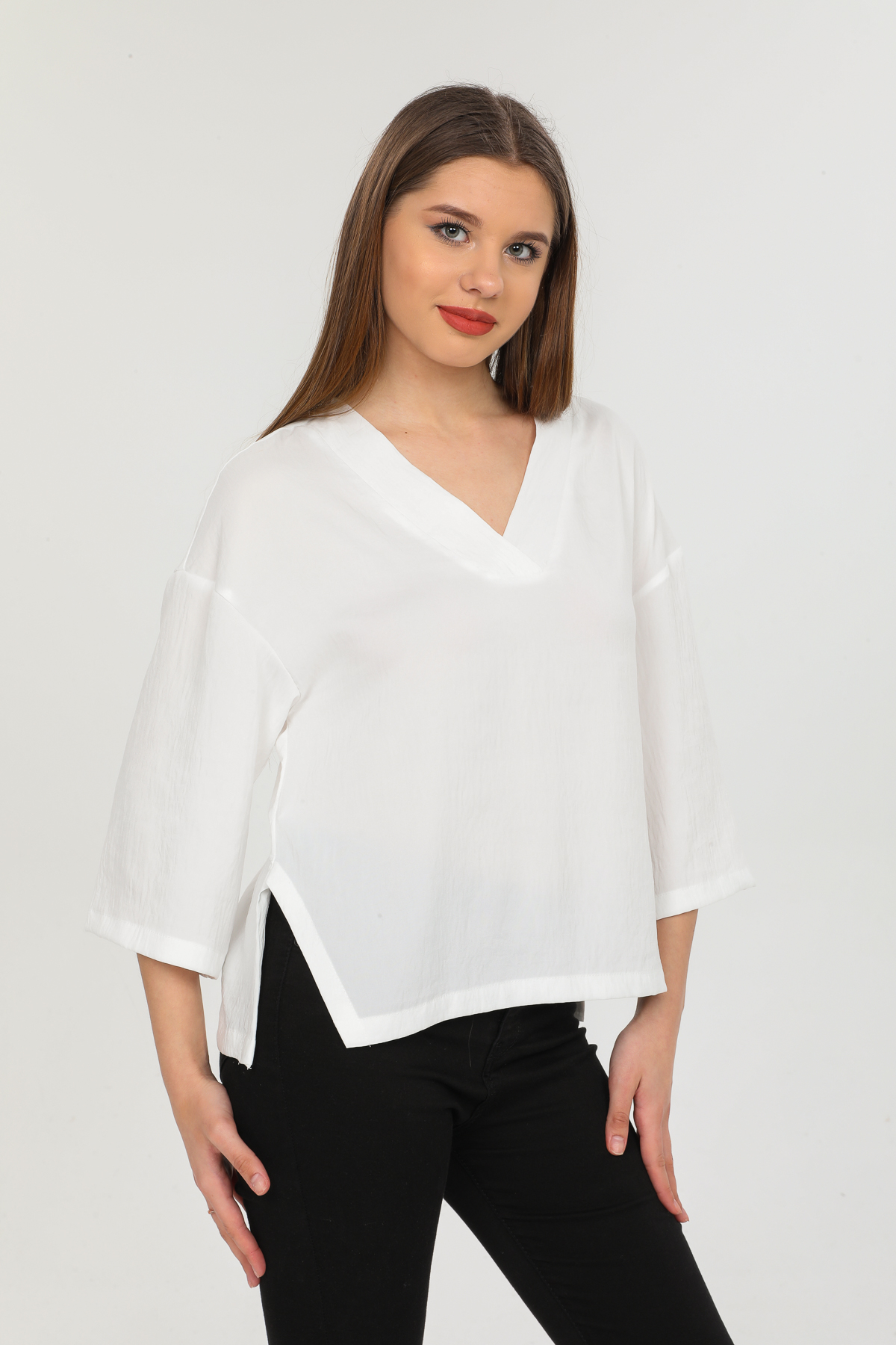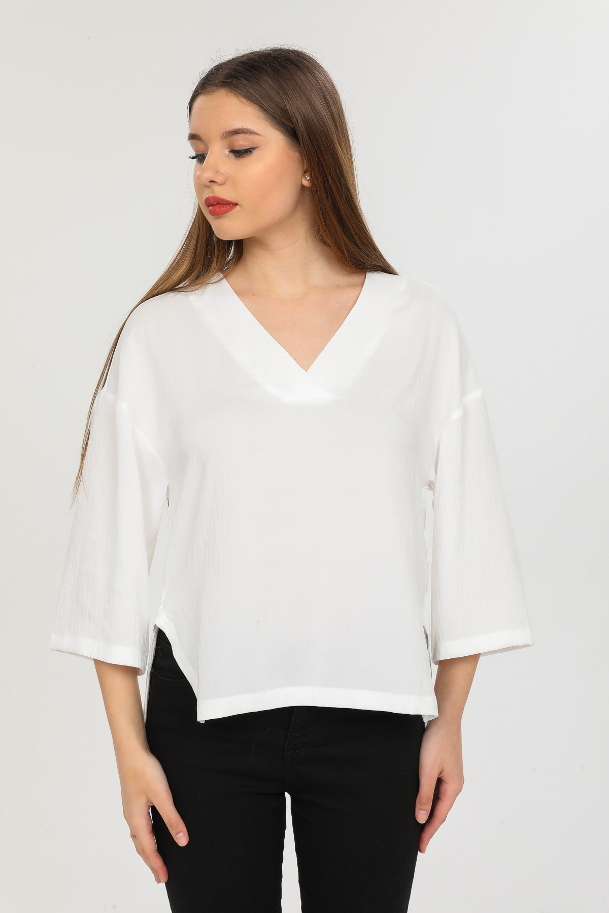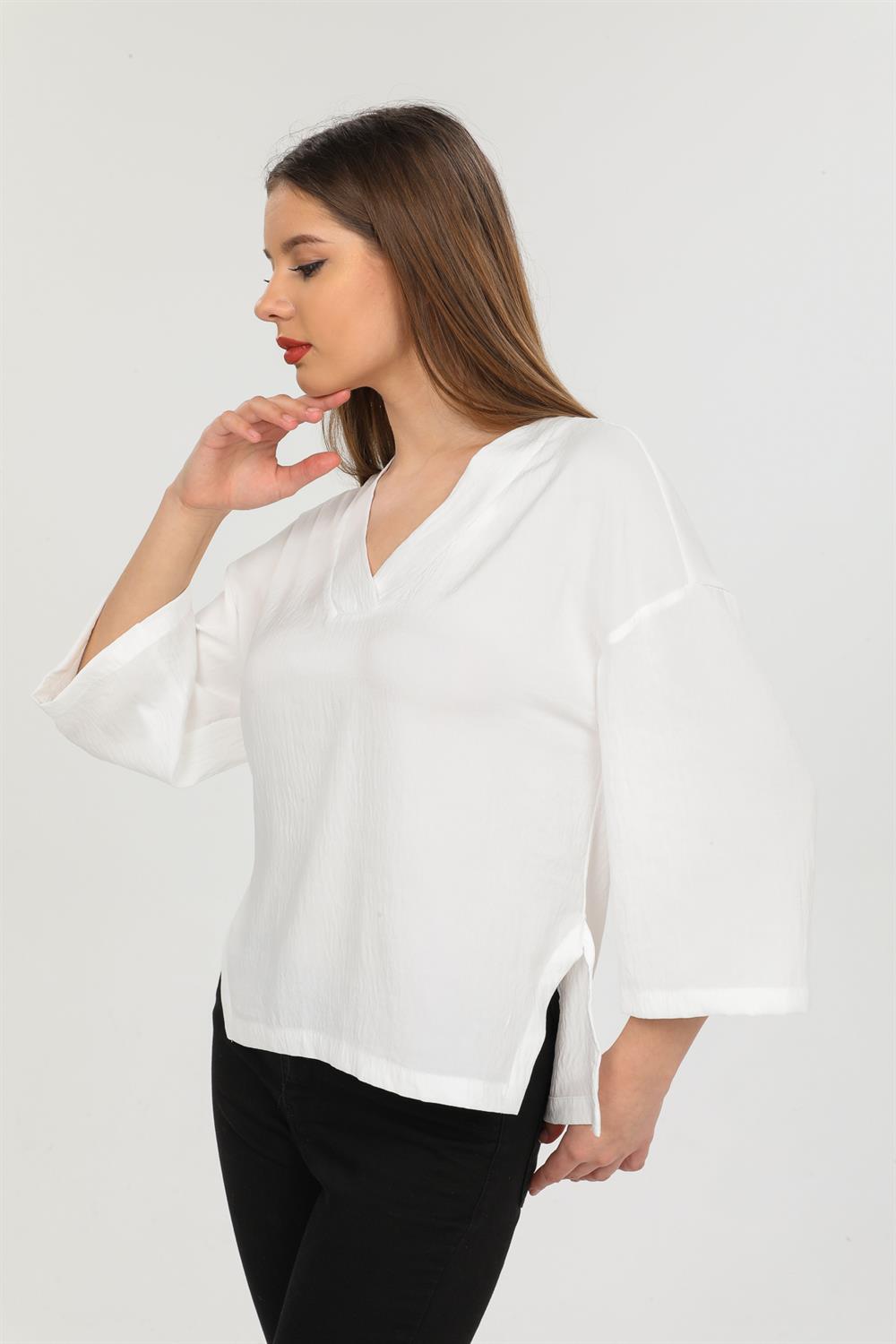 Önü Fırfırlı Dökümlü İç Göstermeyen Bluz Şık Gömlek