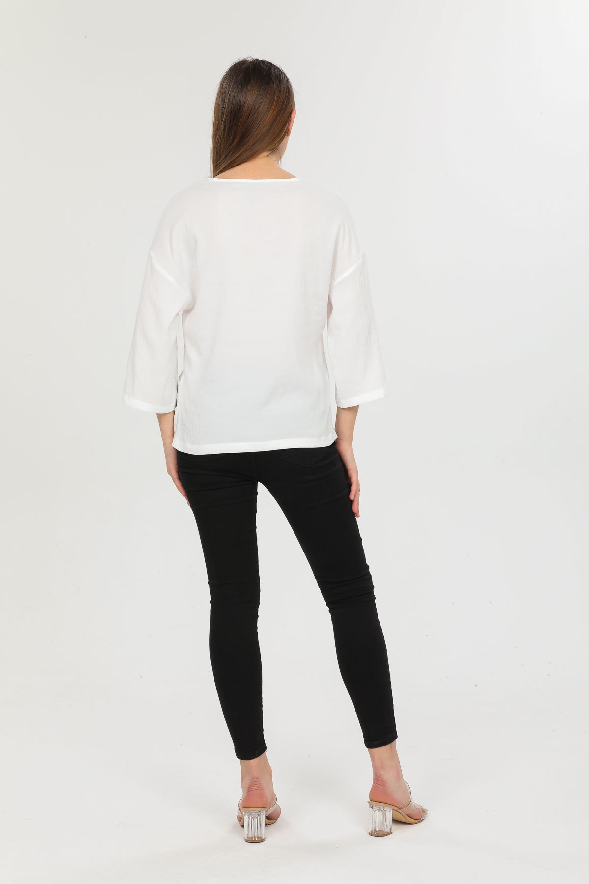 Kadın Gizli Düğme Özellikli Cepli Tunik Gömlek