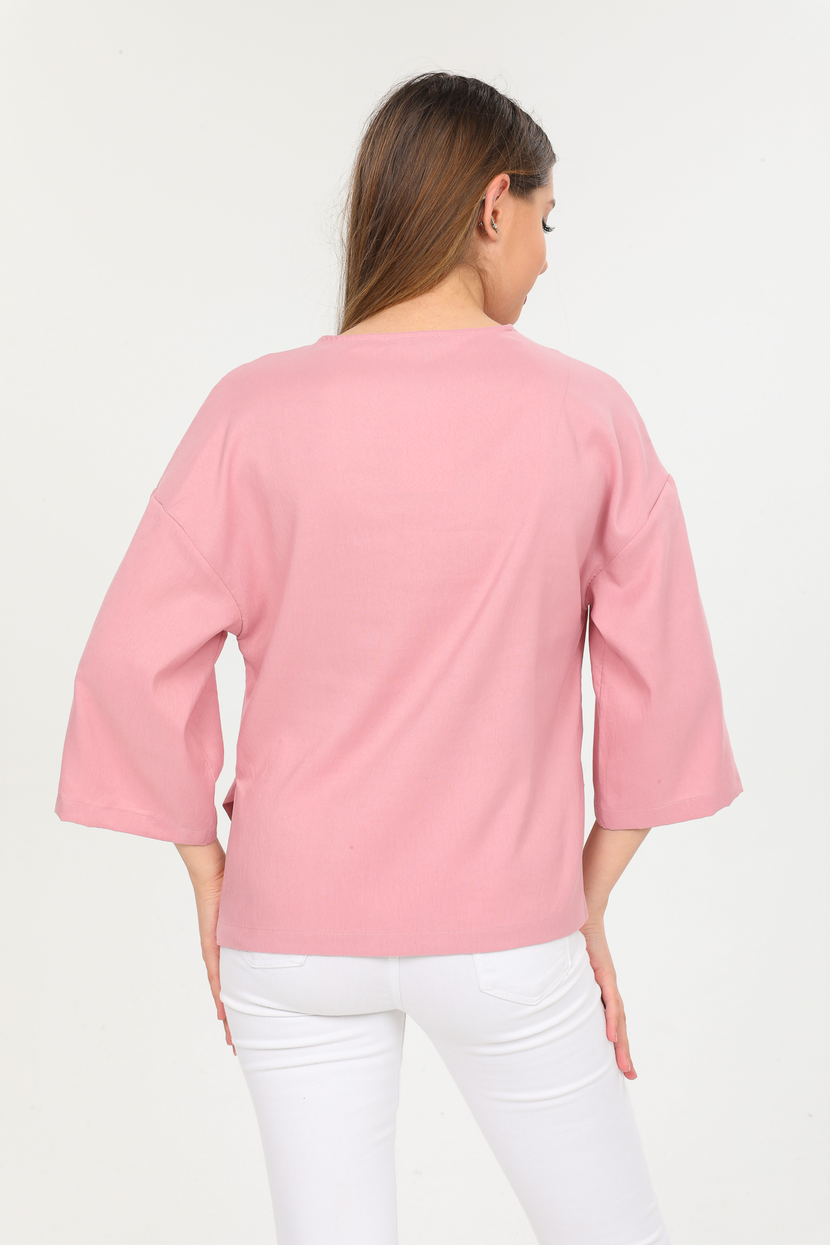 Kadın Gizli Düğme Özellikli Cepli Tunik Gömlek