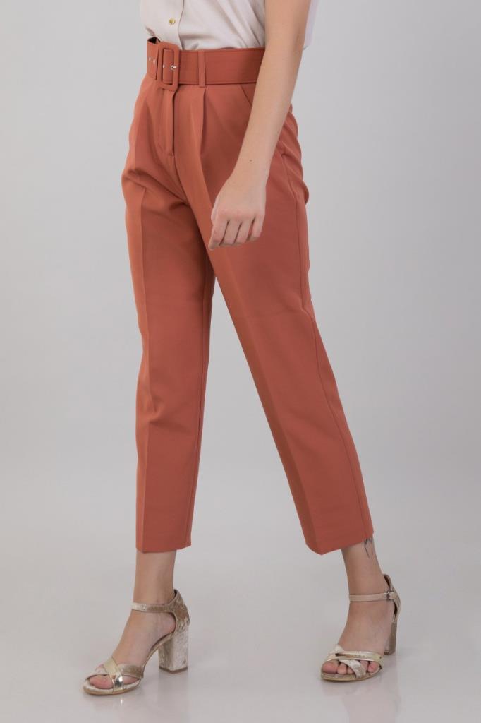Ürün Özellikleri: Yüksek bel, kemer detaylı, ön cepli, düz paça, havuç kesim, düğme-fermuarlı kapama pantolon.
