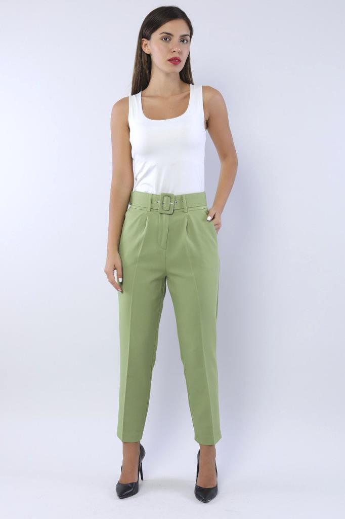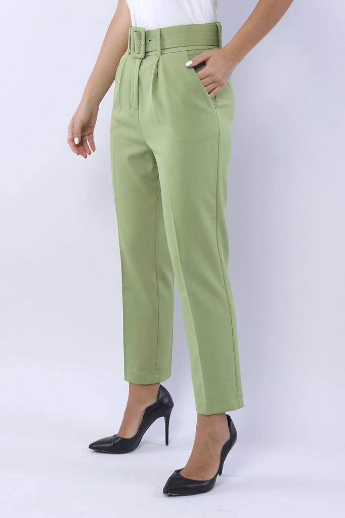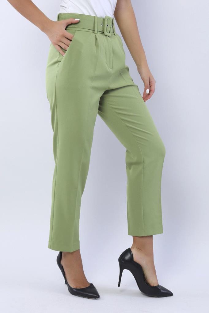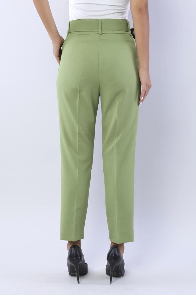 Ürün Özellikleri: Yüksek bel, kemer detaylı, ön cepli, düz paça, havuç kesim, düğme-fermuarlı kapama pantolon.
